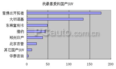 我最喜歡的國產SUV,雪佛蘭開拓者排到了第一,大切諾基排在第二,兩者在SUV方面的努力得到大家的人口,新的一批廠商蓬勃發展,非常具有競爭力,我們期待SUV美好的明天。