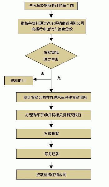 同樣的,小編也為大家整理了一個簡明的汽車消費貸款流程圖,流程如下圖所示: